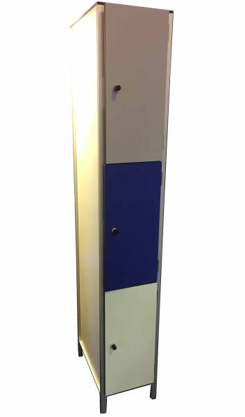 Découvrez notre gamme de casiers vestiaires stratifiés multicasiers avec 3 cases sur la hauteur, conçus pour répondre aux besoins des environnements industriels et des complexes sportifs humides et secs.