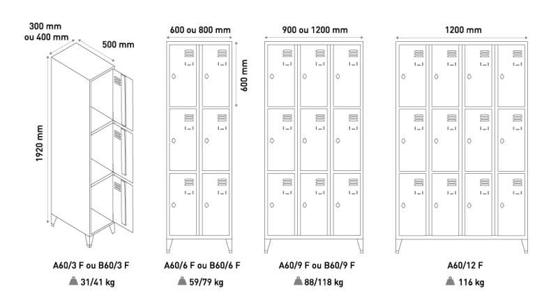Les casiers multicasiers avec 3 cases sur la hauteur offrent un gain de place considérable dans les vestiaires, tout en offrant une solution de rangement individuelle pour les effets personnels de vos employés ou de vos sportifs. Les portes sont équipées de serrures à clé ou de cadenas (en option) pour garantir la sécurité des biens de chacun.