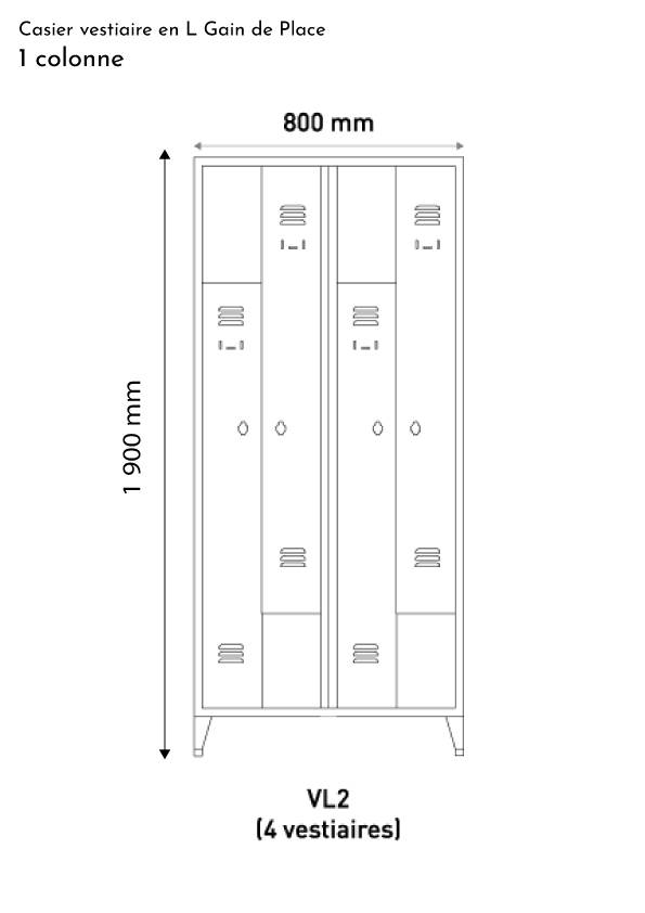 CVCSA est vendeur de vestiaire porte en L métallique à 2 colonnes (réf VL2). L’avantage de cet équipement réside dans sa conception en forme de Z et ces portes battantes en L.